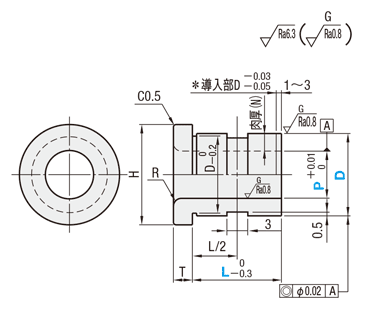 治具ブッシュ 高耐食ステンレス(55HRC~/35HRC~/SUS316L) -ストレートタイプ-