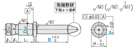 | 先端形状 標準 | 先端形状 A形状 | 先端形状 B形状 | ||||