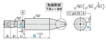 | 先端形状 [ ! ]センター穴が残ります。 | ||