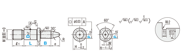 治具用位置決めピン 並級ツバなしタイプ 先端形状選択おねじタイプ