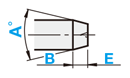 | [ ! ]センター穴が残ります。 [ ! ]P-2Etan(A/2)≧0.73 [ ! ]P-2Etan(A/2)≧2(ディコート®) | [ ! ]センター穴が残ります。 [ ! ]e=P/2÷tan(A/2)+R-{R÷sin(A/2)} |