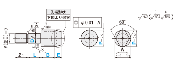 治具用位置決めピン 並級ツバなしタイプ 先端形状選択おねじタイプ