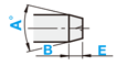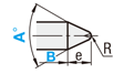 | [ ! ]センター穴が残ります。 [ ! ]P-2Etan(A/2)≧0.73 [ ! ]P-2Etan(A/2)≧2(ディコート®) | [ ! ]センター穴が残ります。 [ ! ]e=P/2÷tan(A/2)+R-{R÷sin(A/2)} |