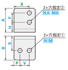| 型式 | 外形寸法 | P | V | S | 穴指定① | X | H | F | 穴指定② | ||||||