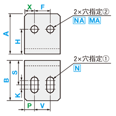 | 型式 | 外形寸法 | P | V | S | 穴指定① | K | X | H | F | 穴指定② | ||||||