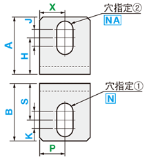 | 型式 | 外形寸法 | P | S | 穴指定① | K | X | H | 穴指定② | J | ||||||