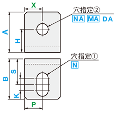 | 型式 | 外形寸法 | P | S | 穴指定① | K | X | H | 穴指定② | ||||||||