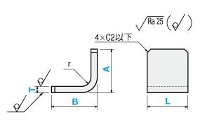 [ ! ]7. プレスブレーキのブレーキ押さえによるキズが付きます。r・e・d寸法は目安となります。