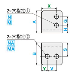 | T | N・NA(ボルト通し穴) | M・MA(タップ穴) |