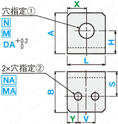 | T | N・NA(ボルト通し穴) | M・MA(タップ穴) |