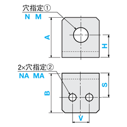 | 型式 | 選択 | 指定1mm単位 | H | 穴指定① | V | S | 穴指定② | ||||||||