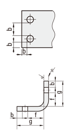 | T | f(穴と曲げの距離) | b (穴と断面 との距離) | g | ||||