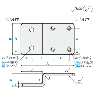 | T | N・NA(ボルト通し穴) | M・MA(タップ穴) |