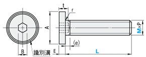 | 型式 | M×P | 頭部径 A | 頭部高さ E | 六角穴幅 B | ||