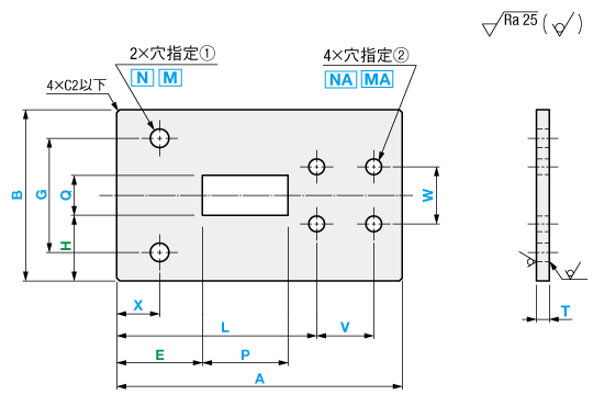 | T | N・NA(ボルト通し穴) | M・MA(タップ穴) |