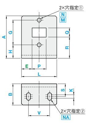 | 型式 | 選択 | 指定1mm単位 | P | Q | E | R | H | G | 穴指定① Code/指定方法 | V | S | 穴指定② Code/指定方法 | K | ||||
