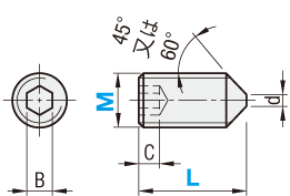 六角穴付止めねじ くぼみ先(スチール・ステンレス・チタン)