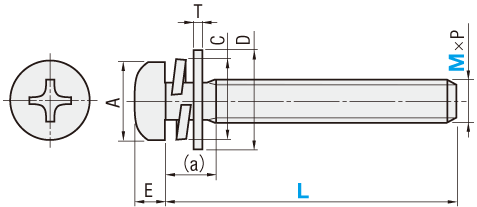 十字穴付(+)ナベ P=4(SW+JIS小形 W組込) 小ねじ