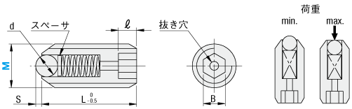 [ ! ]荷重(N)は設計上の参考値です。荷重min.は初期荷重、max.はボールを最大限沈めたときの荷重です。(kgf=N×0.101972)