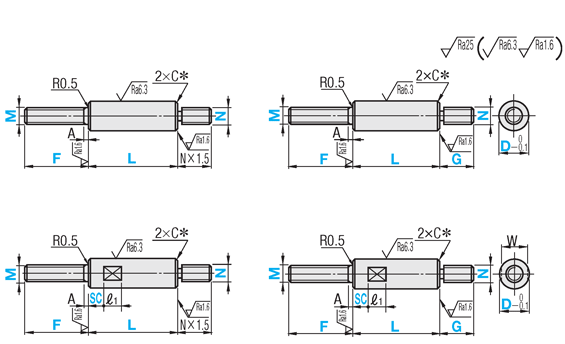円形支柱-両端めねじ【全長公差バラつき保証タイプ・標準タイプ】