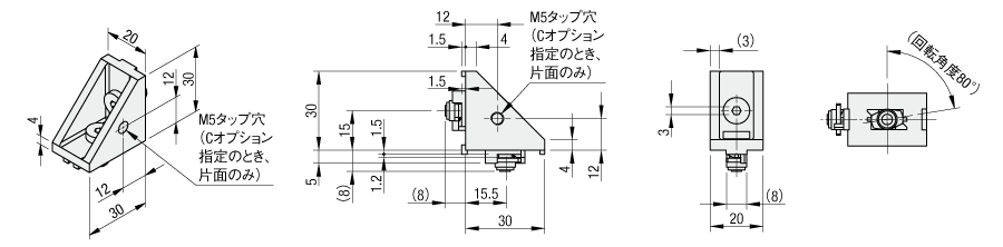 | カバー取付け 穴追加工 | C | ブラケットに、カバー取付用片面M5タップ穴を追加できます。 加工面は左右いずれかとなります(指定不可)。 型式例:HBLFSCK6-C (取付け用ネジこちら HCBM) ![]() | HBLFSCK6 | 80 |