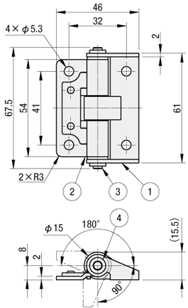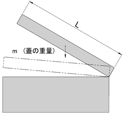 蝶番開き方向トルク発生タイプ(型式末尾A) 上開き扉などの保持用途に適します。 扉を開く際は軽い力で開けられ、任意の角度でトルクが働き保持します。 閉じるときはトルクが抵抗となり、ゆっくりと静かに閉まります。 ![]() <上蓋> <上開き>