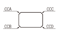| Spec. | 任意のコーナーをR加工します。 R=指定5mm単位 [ ! ]10≦A(B)-R(2R) [ ! ]5≦CRA・CRB・CRC・CRD≦100 指定方法 (例) AとCのコーナーをR10加工 [ NG ]T40・50・60・70・80・90・100は適用不可 | 任意のコーナーをカットすることができます。 5≦コーナーカット≦50 10≦A-C(2C)またはB-C(2C) 5mm単位指定 指定方法 (例) AとDのコーナーをC5でカットする場合 [ NG ]T40・50・60・70・80・90・100は適用不可 | |||