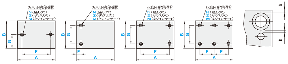 | N(通し穴) | Z(ザグリ穴) | M(ネジインサ−ト) | L(挿入長さ) | ||||||||||