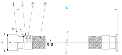 溶接サニタリー管 標準タイプ フェルール×パイプ 長さL=~1500