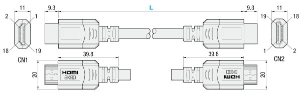 ・コネクタ:HDMIオス(タイプA-19ピン)−HDMIオス(タイプA-19ピン)