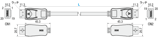 ・コネクタ:ラッチ付きDisplayPortオス(20ピン)−ラッチ付きDisplayPortオス(20ピン)