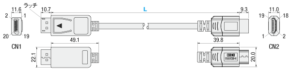 ・コネクタ:【CN1】DisplayPortオス(20ピン)−【CN2】HDMIオス(タイプA-19ピン)