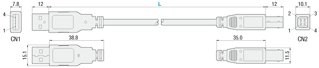 ・コネクタ:USB2.0Type-AオスーUSB2.0Type-Bオス