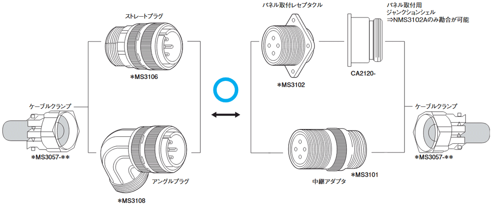 | 日本航空電子工業 | NMS3102A-28-11-P | NMS3106B-28-11-S |