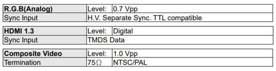 | ピクセルピッチ (H)× (V)mm | 0.213×0.213 | 0.0685×0.2055 | 0.24×0.24 | 0.297×0.297 | |