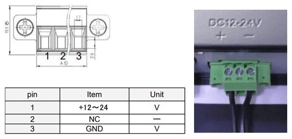 | 電源 | 入力電圧 | DC12-24V (3ピンターミナルブロック) ACアダプタ、変換ケーブル別売り (PCFP-VE-*-R-AC型番をご注文ください。) | |||