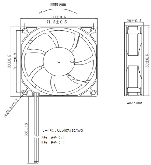 単位:mmリード線:UL1007#24AWG赤線:正極(+)取付方法