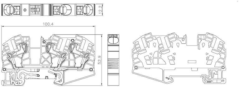 | mm | mm | mm | mm2 | AWG | mm2 | AWG | IEC (V) | IEC (A) | UL (V) | UL (A) | (g) | エンドプレート ※〇〇:色型式 | エンドプレート URL | ジャンパー ※〇〇:極数 | ジャンパー URL | 銘鈑類 URL | |||||