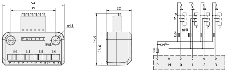 | E-INT-TB6P3X4-CB | 54 | 44.6 | 22 | 6 | 3X4 | 主回路:1.5 支回路:100mA | 52 | |||||||||