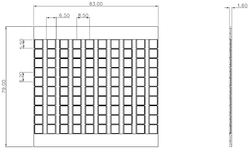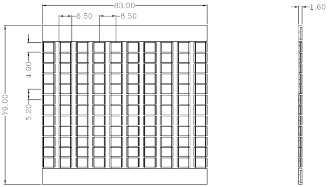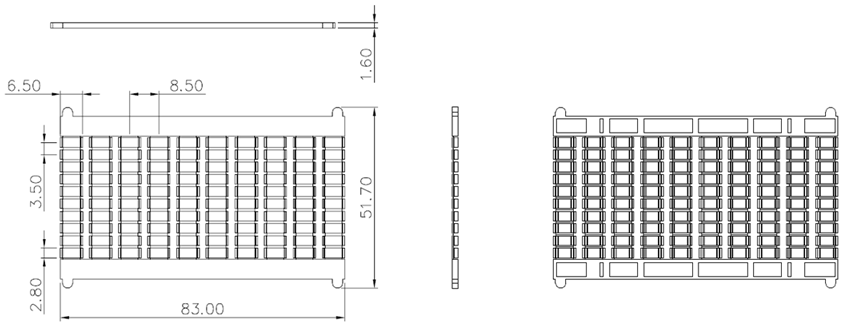 | 型式 | 長さ (mm) | 幅 (mm) | 高さ (mm) | 重さ (g) | 枚数 |