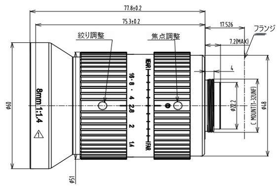 | 焦点距離 | 6mm | 8mm | 12mm | 16mm | 25mm | 35mm | 50mm |