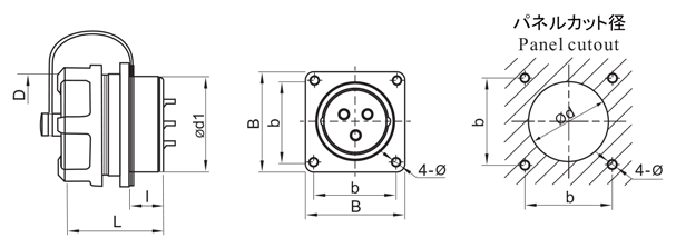 非防水メタルコネクタ パネル取付レセプタクル(ネジ式)NCSシリーズ