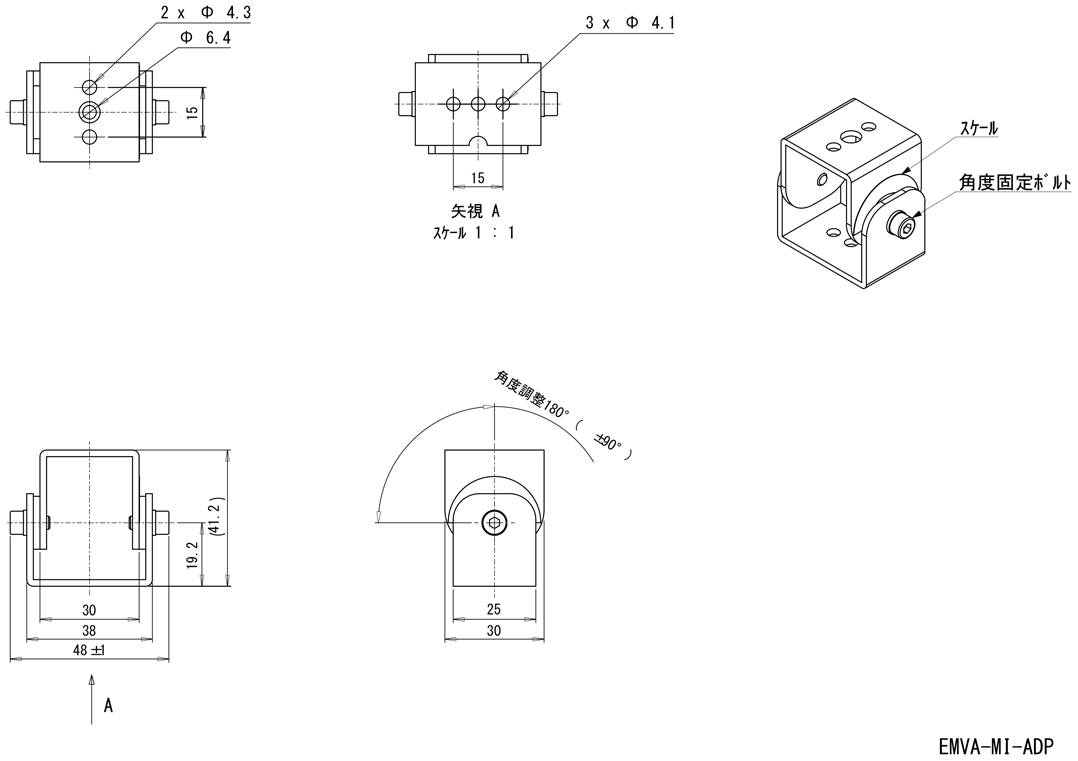 | EMVA-MI-ADP | 1軸 | チルト方向に180°(±90°) | 1.5kg | 約80g | ![]() |