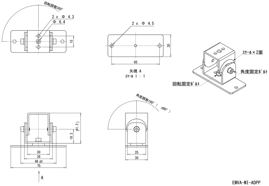 | EMVA-MI-ADPP | 2軸 | チルト方向に180°(±90°) パン方向に360° | 1.5kg | 約120g | ![]() |