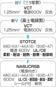 | シェルタイプ (配列NO/芯数) | コネクタ | Vケーブル | Bケーブル | Fケーブル | ||||||||