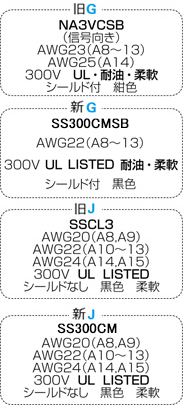 | シェルタイプ (配列NO/芯数) | コネクタ | Hケーブル | Gケーブル | Jケーブル | ||||||||