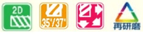 | 被削材 | 機械構造用炭素鋼 (S45C~S55C) | 合金工具鋼 (SKD) | ステンレス鋼 | チタン合金 | インコネル、ハステロイ | |||||