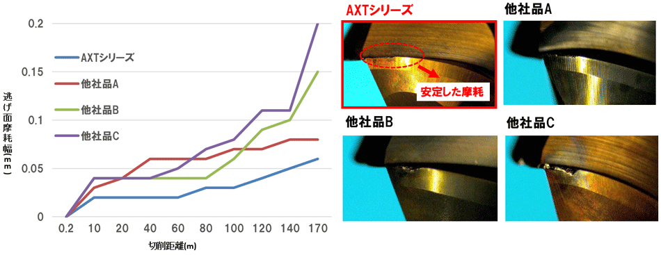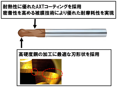 ・AlTiSiNコーティング採用による高い耐熱性と、複層構造かつ被膜技術による優れた耐摩耗性を実現