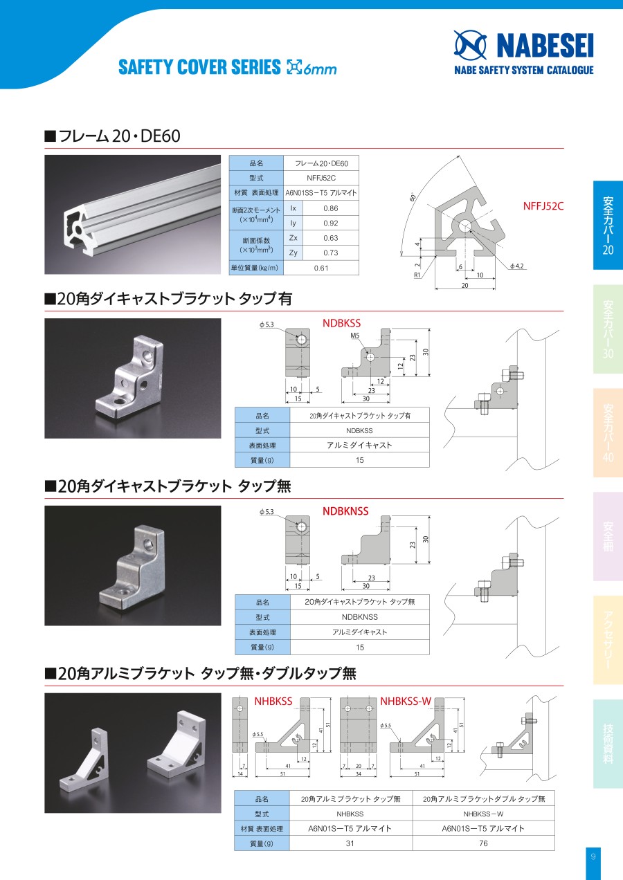 | NDBKNSS | 20角ダイキャストブラケット タップ無 | アルミダイキャスト | 15 |
