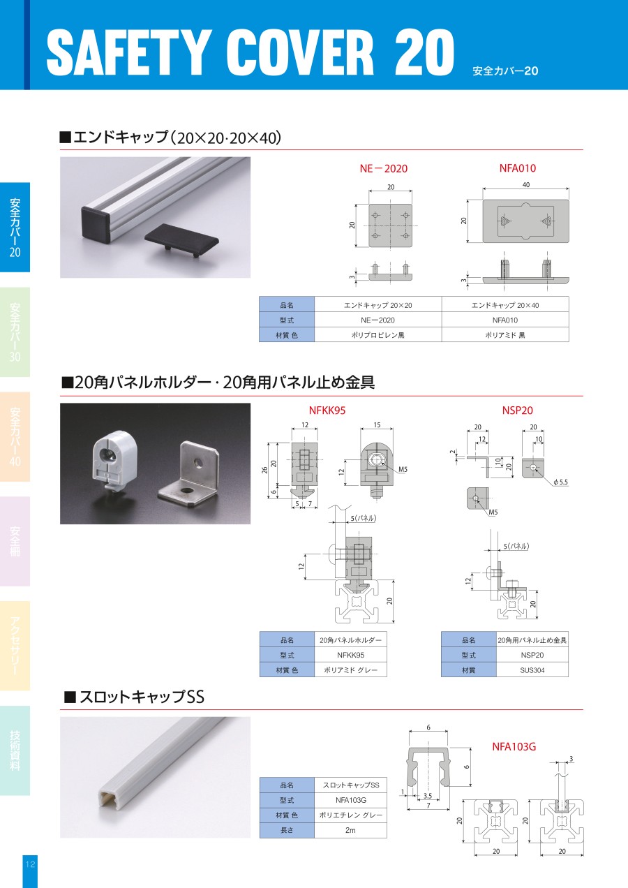 エンドキャップ(20シリーズ用)の型番NE-2020のページです。 型番NE-2020に関する仕様情報を記載しております。